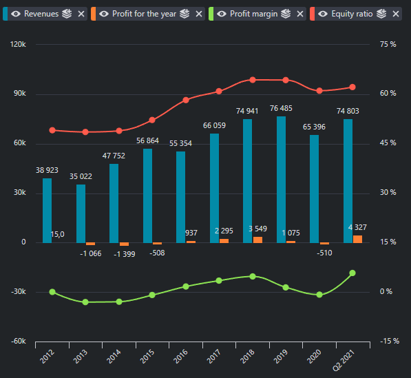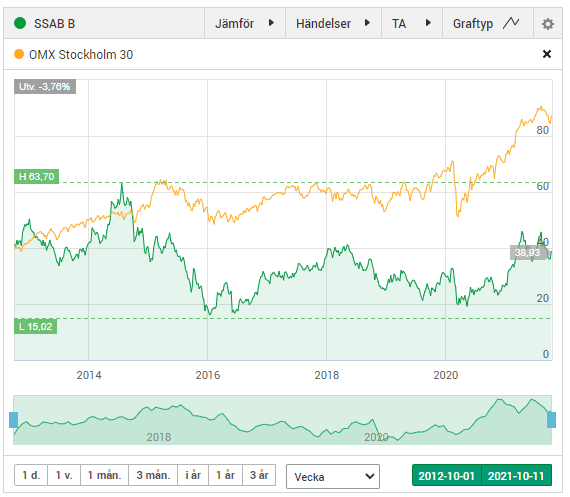 Exempelvis har SSAB haft både uppgångar och nedgångar gällande sin vinst, och detta reflekteras i aktiekursen.