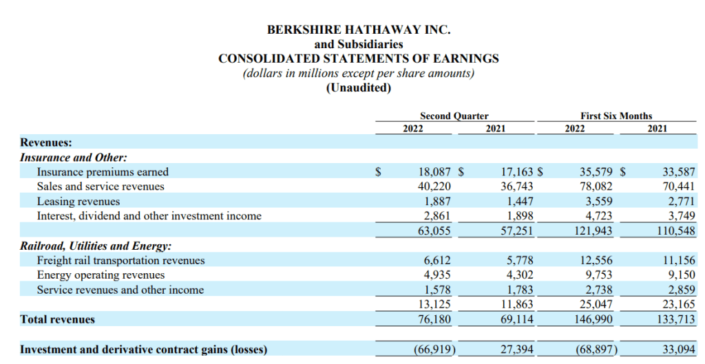 Det gamla textilbolaget Berkshire Hathaway, numera rattat av Warren Buffett och hans partner Charles Munger rapporterade i helgen bolagets andra kvartal för 2022.