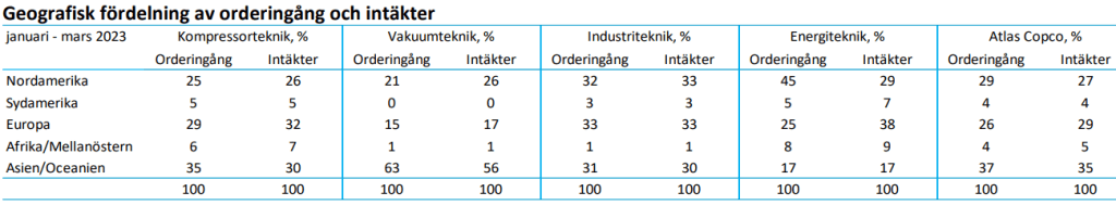 Det är egentligen bara Afrika/Mellanöstern samt Sydamerika som laggar efter, men det är inget ovanligt för industribolag som Atlasc Copco då liten till ingen industri finns i dessa länder som efterfrågar den typ utav högteknologiska utrustning som våra Svenska bolag tillverkar.